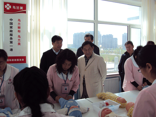 自治區(qū)人社廳領(lǐng)導(dǎo)一行來烏蘭美國(guó)際家政服務(wù)港視察